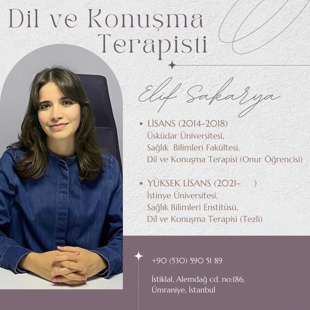 Uzm. DKT Elif Sakarya, 2018 yılından beri Dil ve Konuşma Terapisti olarak hizmet vermektedir.